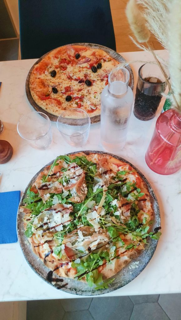 • De mon côté, j’ai opté pour une Pinsa au jambon cru, roquette et crème balsamique. Un vrai bijou culinaire. La pâte, aérienne et croustillante à la fois, mettait en valeur la fraîcheur des ingrédients. Chaque bouchée était un bonheur : léger, goûteux, sans lourdeur. Une dinguerie absolue.