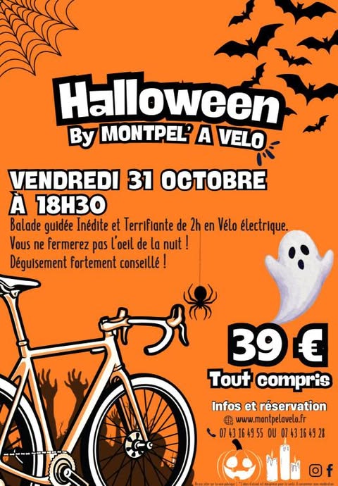 Pour une expérience d’Halloween originale, enfile ton déguisement et rejoins Montpel’ à Vélo le vendredi 31 octobre à 18h30 pour une balade guidée inédite et terrifiante de 2h en vélo électrique.